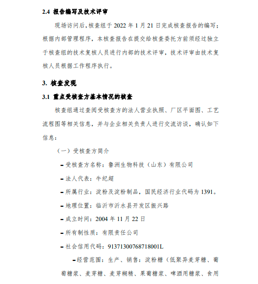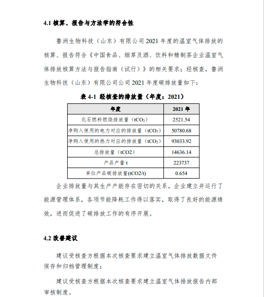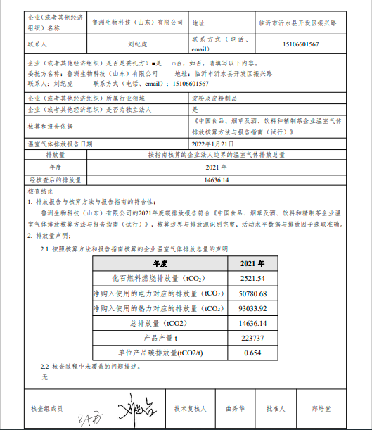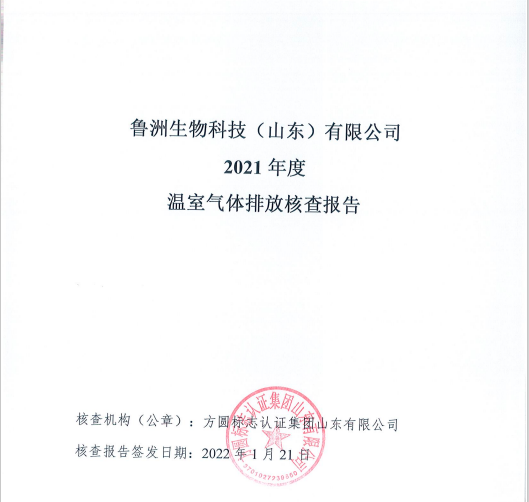 魯洲生物科技(山東)有限公司2021年度溫室氣體排放核查報告